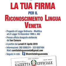 SI INFORMA CHE SI CONTINUA LA RACCOLTA DELLE FIRME PER "PROPOSTA DI LEGGE ORDINARIA - RICONOSCIMENTO LINGUA VENETA"