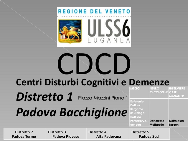 ATTIVAZIONE CENTRO DISTURBI COGNITIVI E DEMENZA-DISTRETTO PADOVA SUD