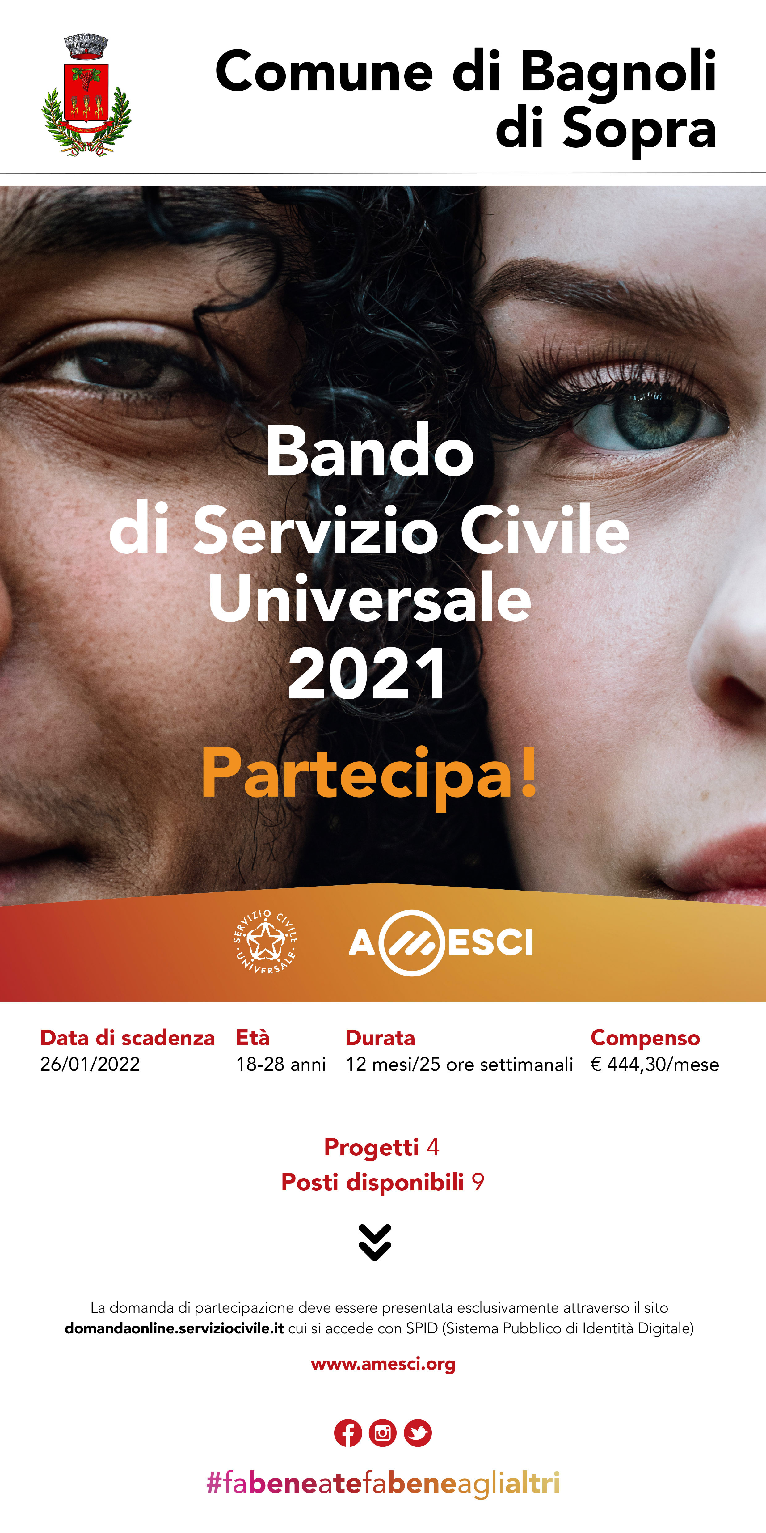 Il Comune di Bagnoli di Sopra cerca 9 giovani da inserire nei progetti di Servizio Civile Universale attivati presso i propri uffici.