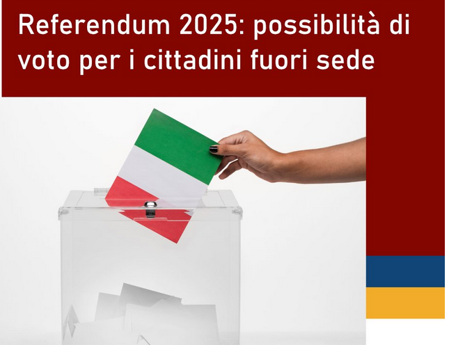 In occasione delle prossime consultazioni referendarie del 8-9 giugno 2025, sono ammessi a votare fuori sede i cittadini che per motivi di studio, lavoro o cure mediche, sono temporaneamente domiciliati in un comune situato in una provincia diversa da quello in cui si trova il comune di residenza, per un periodo di almeno 3 mesi nel quale ricade la data delle consultazioni.